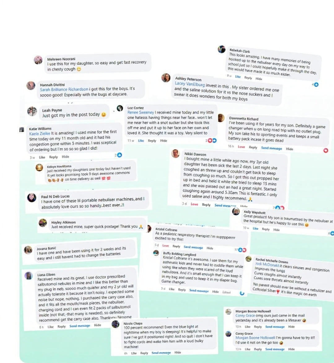 Because everyone deserves peace of mind - a quiet mist you can count on, day or night. Whisper-quiet for peaceful sessions. USB-C rechargeable - use it in bed, car or stroller. Kid-friendly & stress-free - designed for all ages. 🌍 Trusted by 35,000+ families worldwide